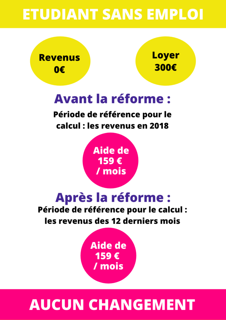Pour les étudiants sans revenus, la réforme ne change rien. En zone 3 par exemple (agglomération de moins de 100 000 habitants), le montant des APL pour les logements du CROUS ou ALS pour le parc privé reste fixé à 159€. À Lyon, il est toujours de 143,52€ pour un logement non meublé au loyer de 600€ (occupé seul). Prenons une autre situation. Il y a deux ans, vous viviez encore tranquillement dans le nid familial, sans avoir à vous soucier des questions d’argent. Votre situation a changé, vous êtes devenu un étudiant qui s’assume, avec votre propre logement et un job pour subvenir à vos besoins… Théoriquement, vous devriez faire partie partie des grands perdants de cette réforme des allocations logement. Heureusement, un forfait plancher a été prévu pour les étudiants qui travaillent depuis deux ans. Ainsi « le niveau des APL ne baissera pas », assure la Caisse d’allocations familiales sur son site internet. Une condition cependant, il faut être âgé de moins de 28 ans au 1er septembre 2020.