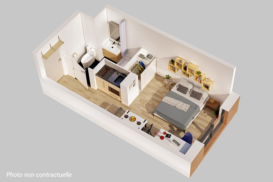 Les studios sont meublés avec un coin cuisine équipé et la résidence est sécurisée. La résidence étudiante est toute neuve (Septembre 2023). Vous pourrez profiter d’une salle de yoga, d’une laverie et des kits linge et vaisselle seront à votre disposition. La résidence ouvre droit aux aides au logement (ALS). De plus, vous pouvez annuler votre bail en cas d’échec au baccalauréat, à un examen, ou a une admission dans un établissement se situant dans une autre ville que celle de la résidence (voir conditions).