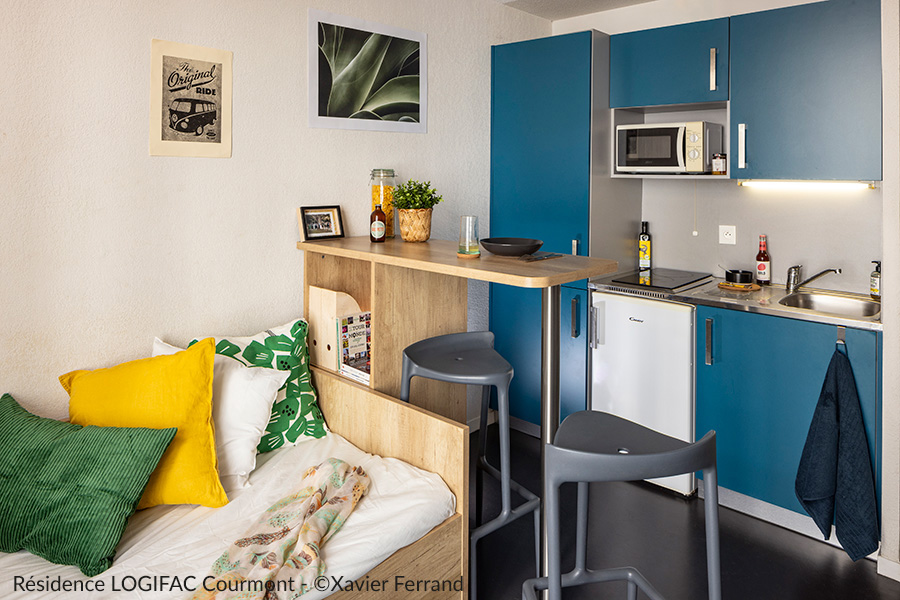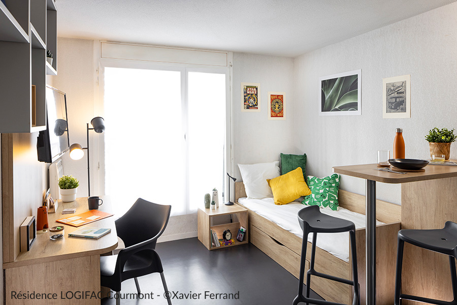 Les studios sont meublés avec un coin cuisine équipé et certains sont adaptés aux personnes à mobilité réduite (PMR). La résidence étudiante est récente et dispose d’une salle de travail, d’une laverie et d’un local à vélo. La télévision et internet sont compris dans le loyer. Elle est sécurisée et les équipes LOGIFAC vous accompagnent tout au long de l’année !